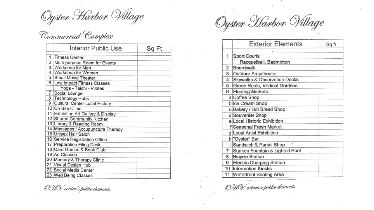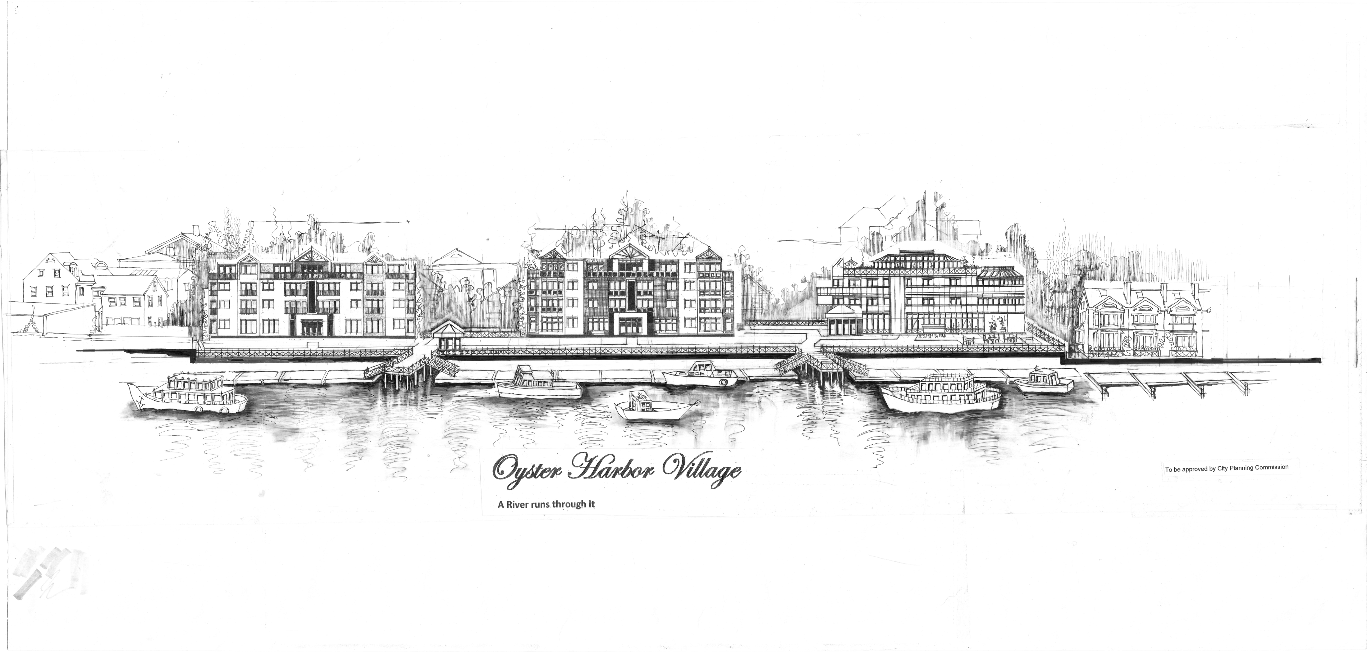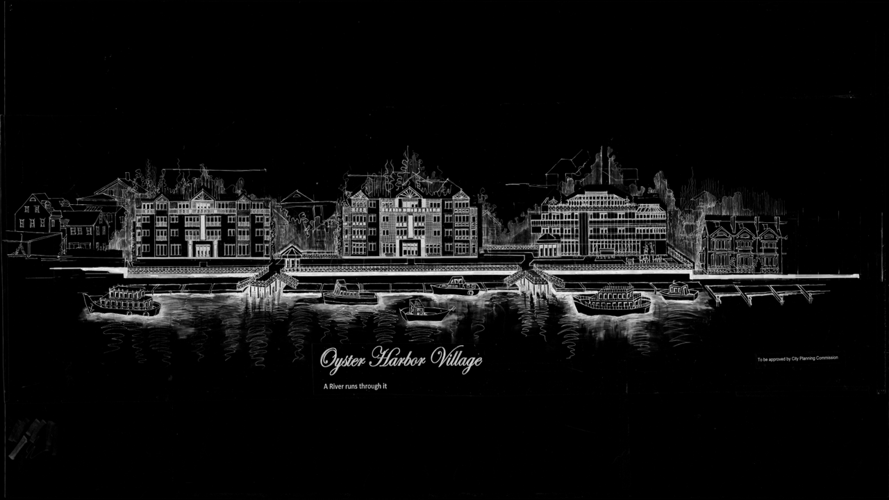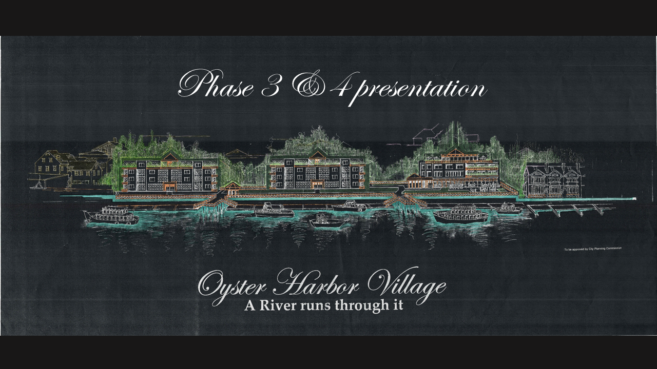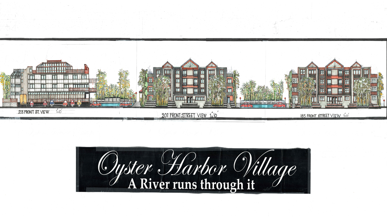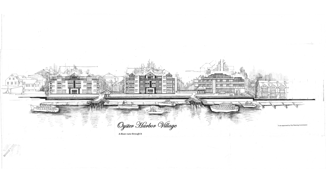 Artistic renderings showcasing the vision for Oyster Harbor Village's waterfront development.