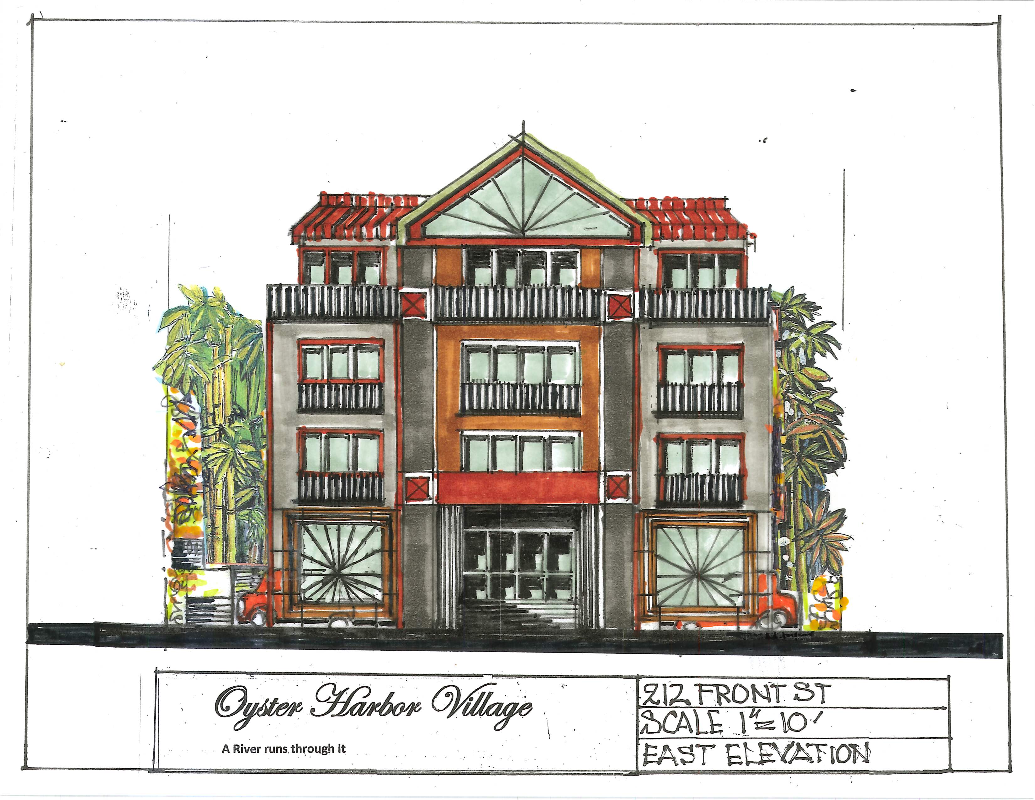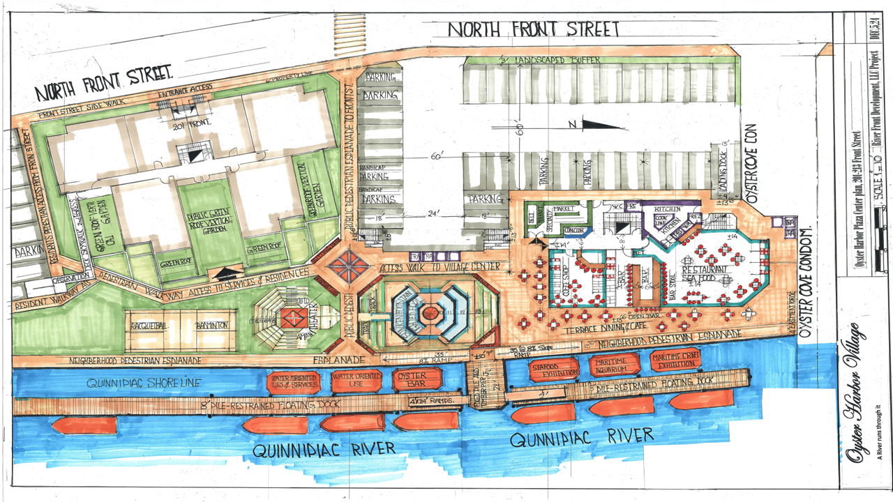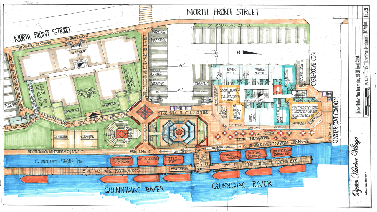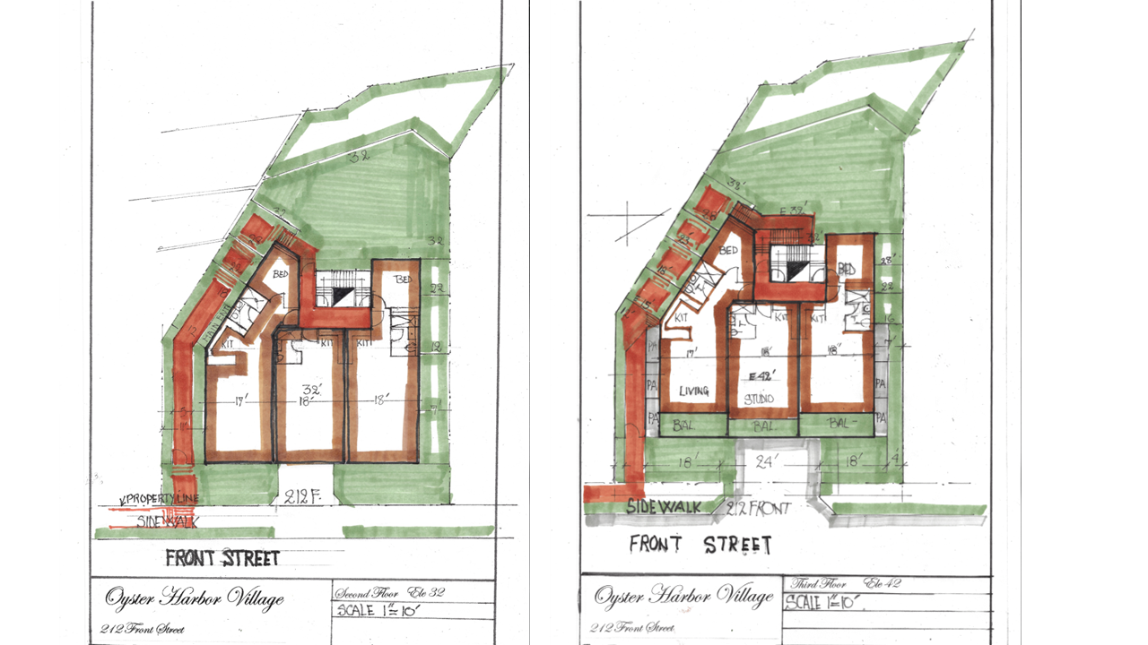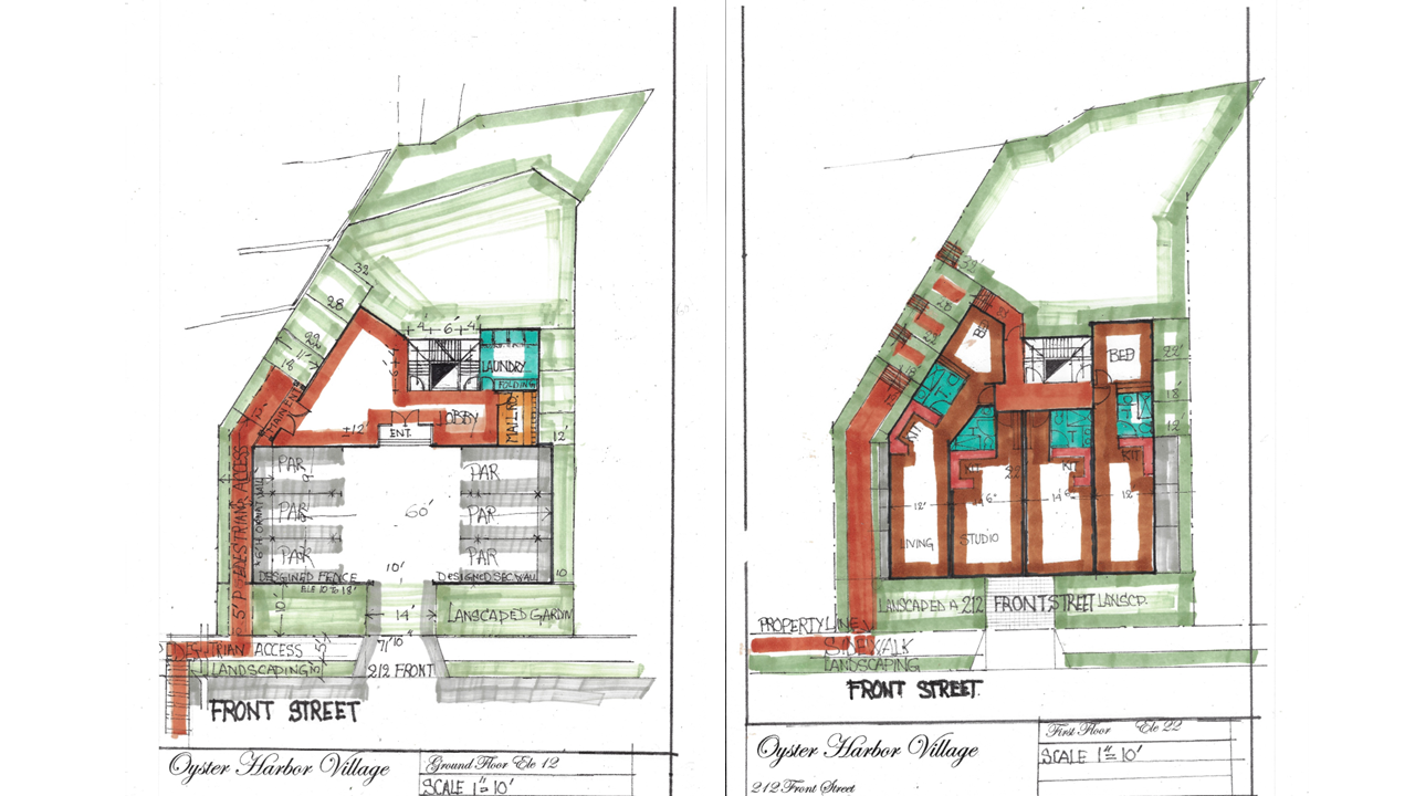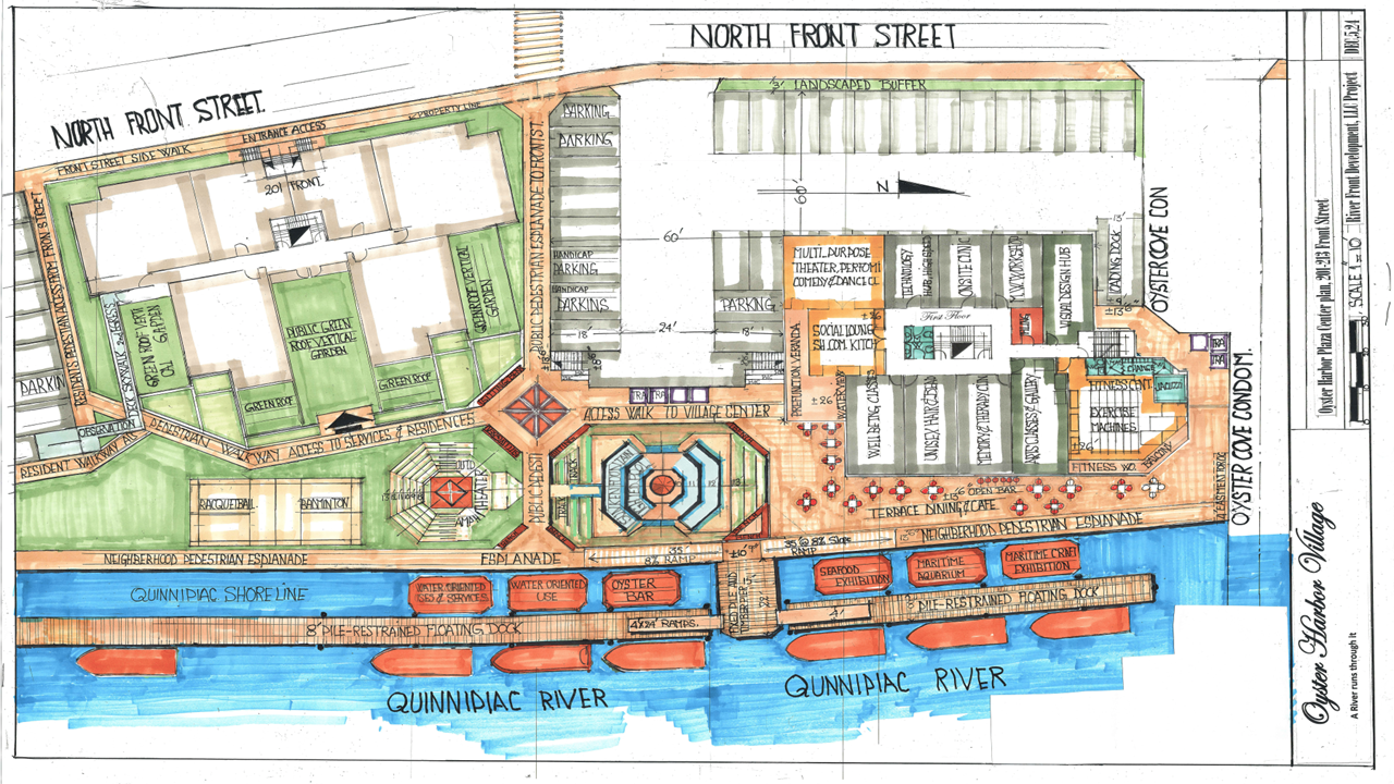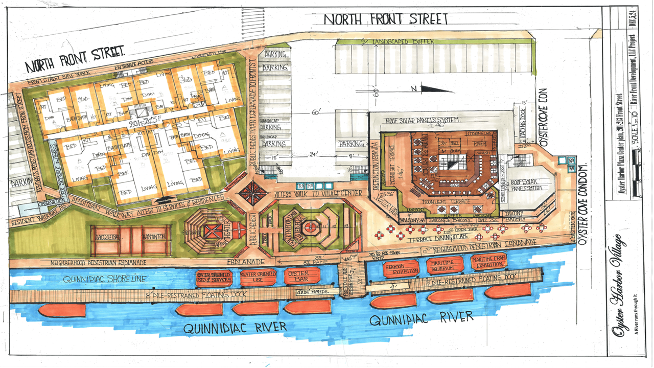 Artistic renderings showcasing the vision for Oyster Harbor Village's waterfront development.